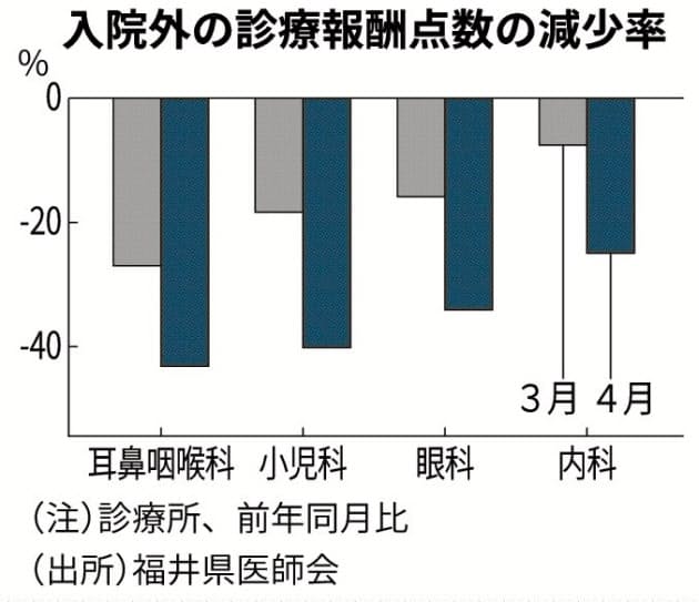 福井、4月診療報酬2桁減 「受診控える傾向続く」 - 日本経済新聞