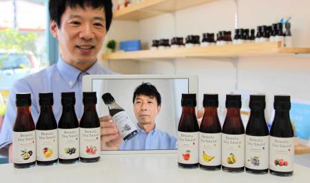 兵庫県たつの市特産の淡口(うすくち)しょうゆに、ブルーベリーやラズベリー、洋ナシなどの果汁を加えた「フルーツしょうゆ」。同県宍粟市出身の事業家・岡崎利彦さん(55)が8年前に商品化し、今年から海外で本格的に売り出そうとしている。日本の伝統調味料に、果物の風味をまとわせた兵庫発のユニーク商品は、海の向こうでも受け入れられるのか。関係者の挑戦を追った。(長尾亮太)