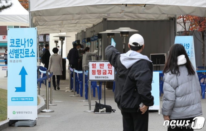 | (서울=뉴스1) 신웅수 기자 = 6일 오후 서울 영등포보건소에서 마련된 신종 코로나바이러스 감염증(코로나19) 선별진료소에서 시민들이 코로나19 검사를 받기 위해 상담을 받고 있다. 질병관리청 중앙방역대책본부에 따르면 6일 0시 기준으로 국내 코로나19 확진자는 145명 증가해 2주 만에 최대 규모를 기록했다. 방역당국은 "수도권에서의 점진적인 증가세가 계속된다면 거리두기 1.5단계로의 격상을 검토해야 하는 상황"이라고 경고했다. 2020.11.6/뉴스1 |